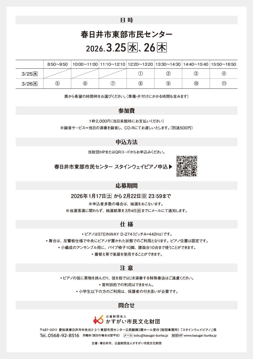 春日井市東部市民センター 響きを体感!スタインウェイピアノ2026.3