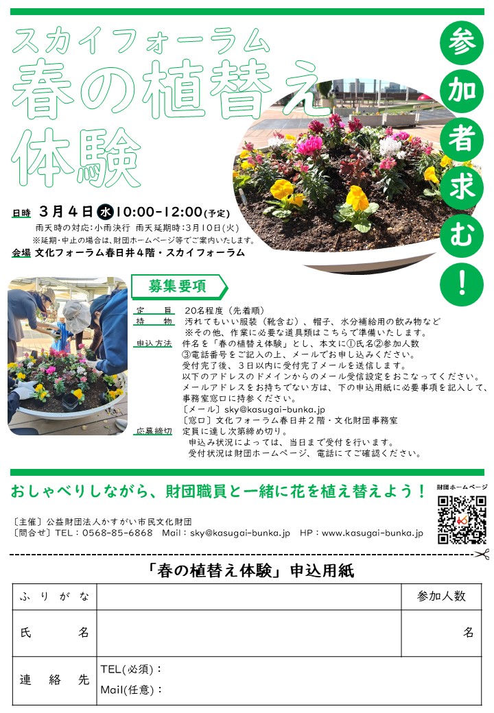 参加者求む!スカイフォーラム 春の植替え体験