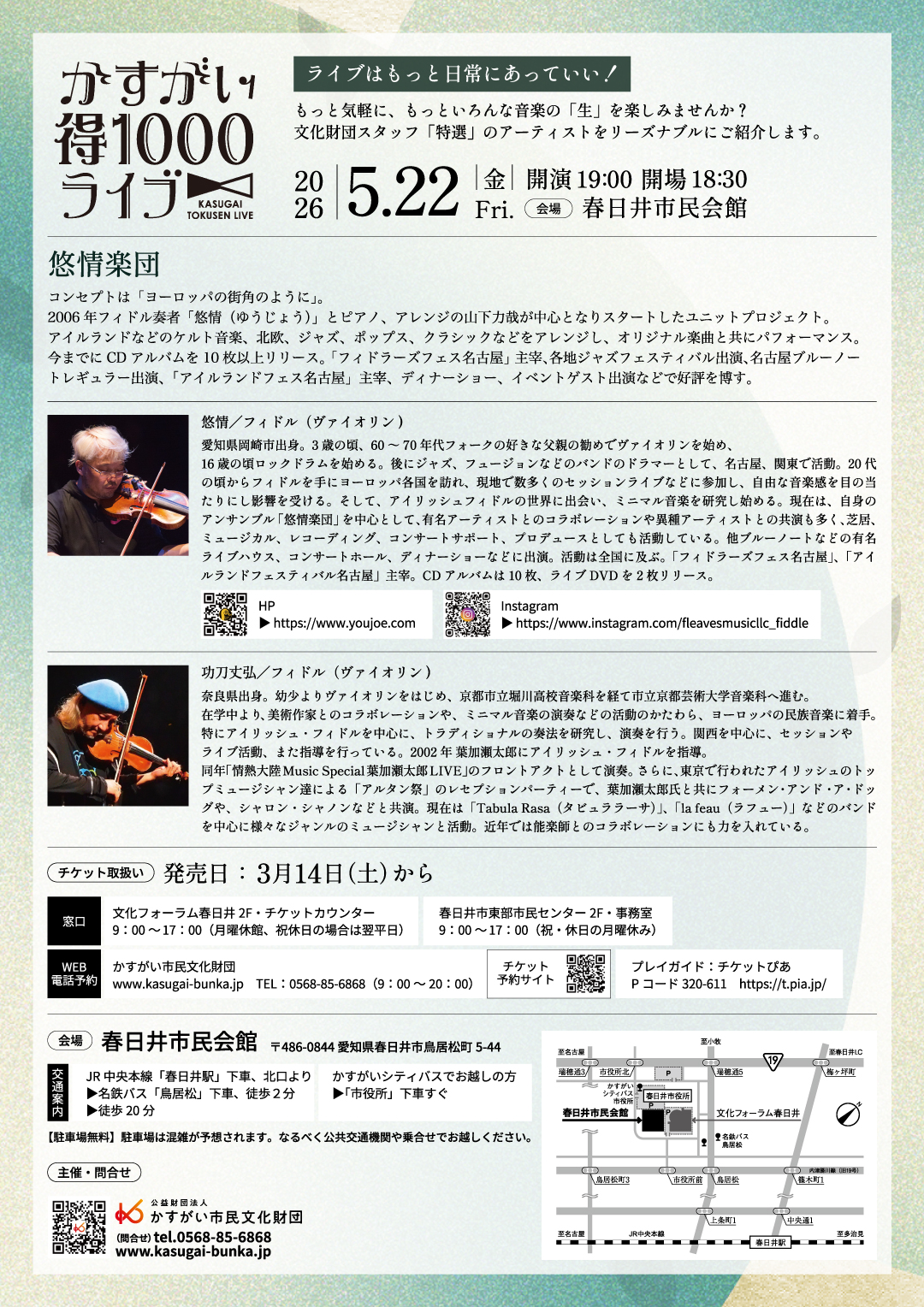 かすがい得1000ライブvol.5 悠情楽団 with 功刀丈弘